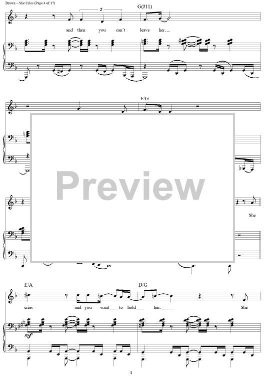 Digital Sheet Music for She Cries by Jason Robert Brown scored for Piano/Vocal/Chords; id:406670