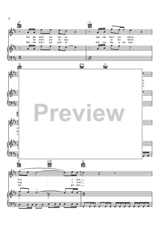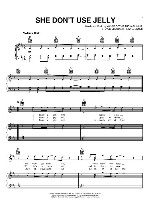 Digital Sheet Music for She Don't Use Jelly by Ben Folds, Wayne Coyne, Steven Drozd, Flaming Lips, Michael Ivins scored for Piano/Vocal/Chords; id:373311