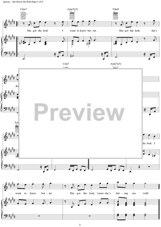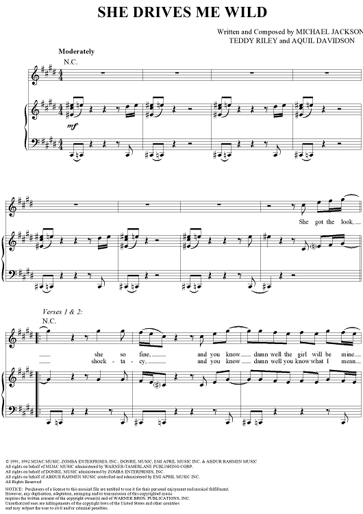 Digital Sheet Music for She Drives Me Wild by Michael Jackson, Teddy Riley, Aquil Davidson scored for Piano/Vocal/Chords; id:124336