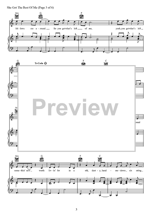 "She Got The Best Of Me" Sheet Music by Luke Combs
