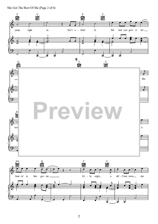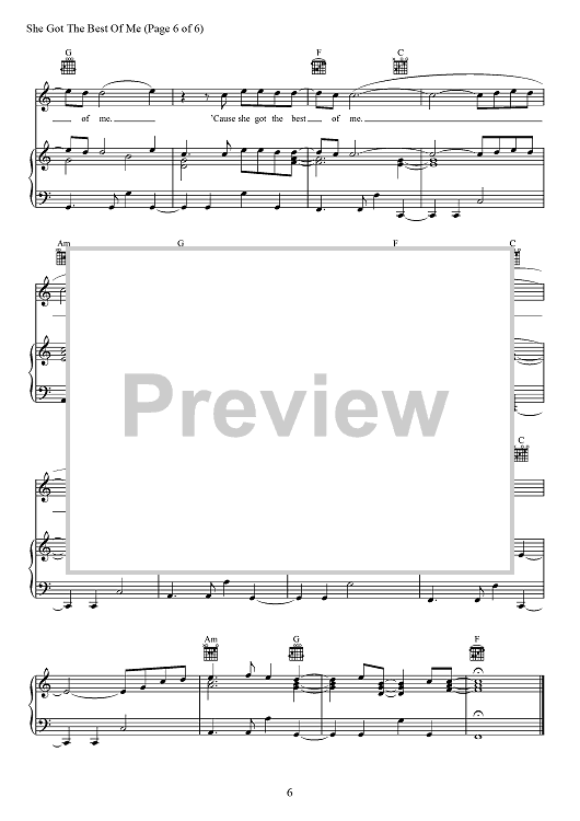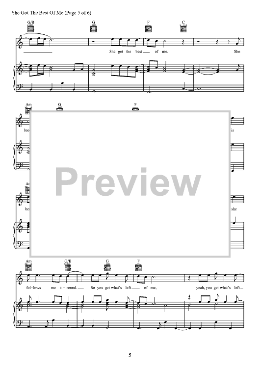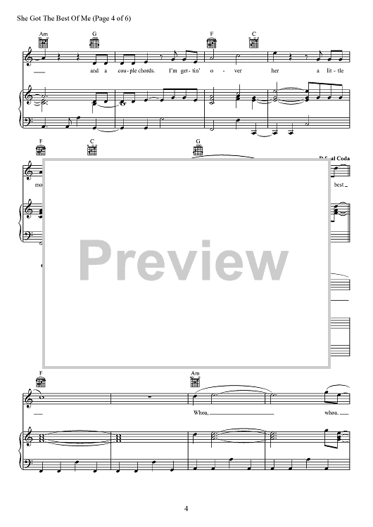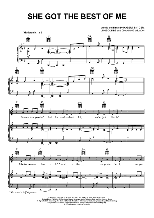 Digital Sheet Music for She Got The Best Of Me by Luke Combs, Robert Snyder, Channing Wilson scored for Piano/Vocal/Chords; id:466866