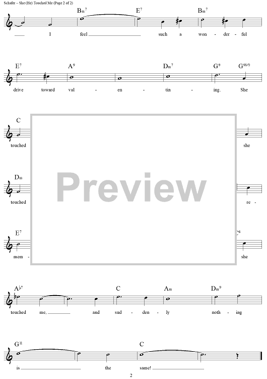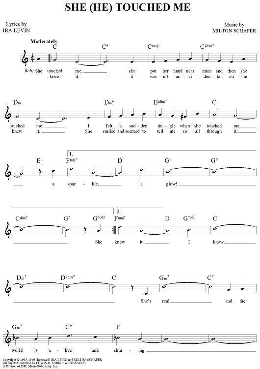 Digital Sheet Music for She (He) Touched Me by Ira Levin, Milton Schafer scored for Lead Sheet; id:442530