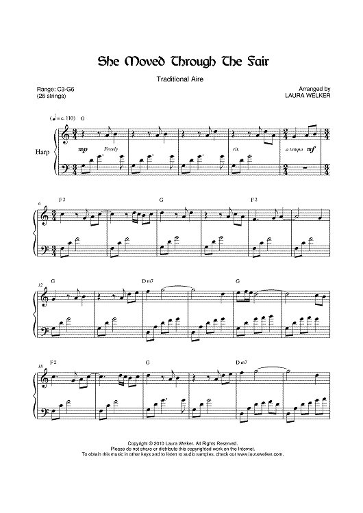 Digital Sheet Music for She Moved Through the Fair by Various, Traditional, Laura Welker scored for Lever Harp; id:417953
