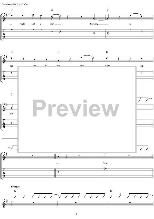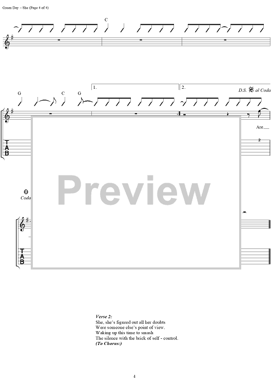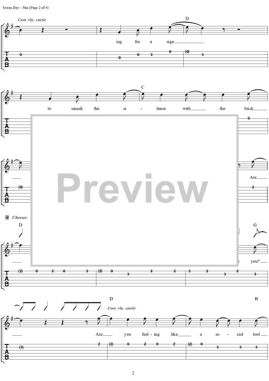 "She" Sheet Music by Green Day