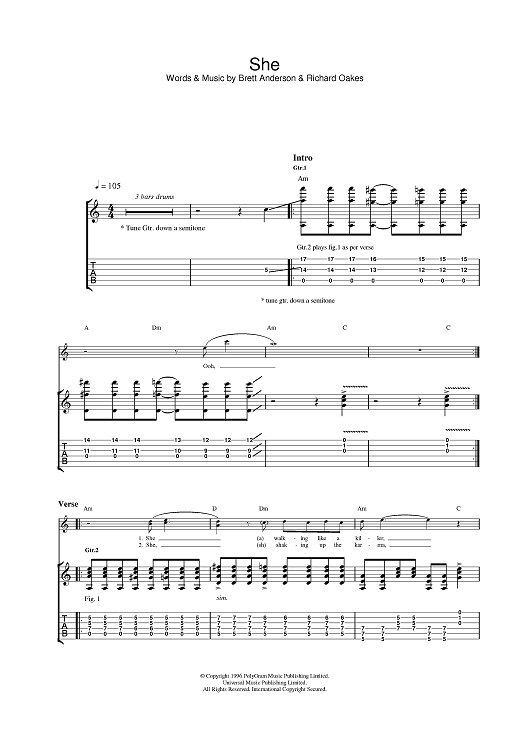 Digital Sheet Music for She by Suede scored for Guitar Tab; id:376340
