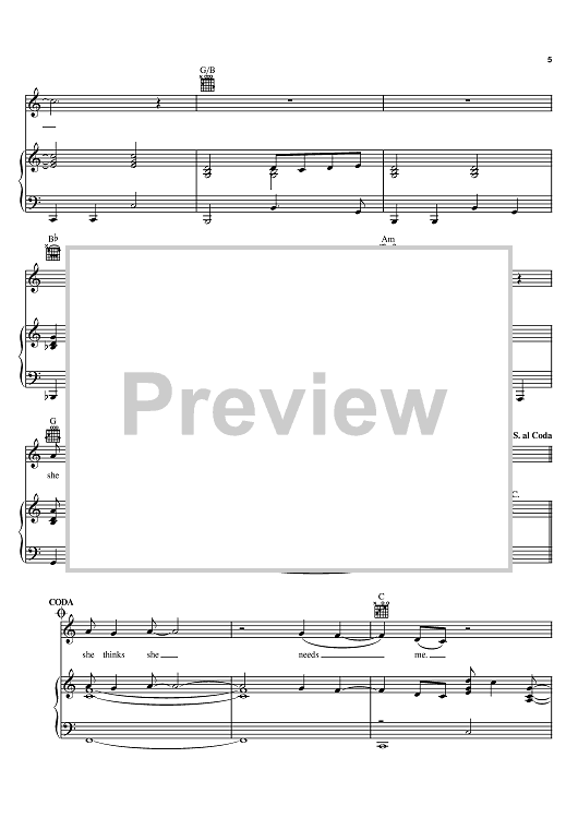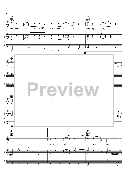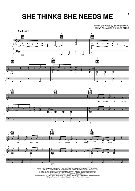 Digital Sheet Music for She Thinks She Needs Me by Shane Minor, Andy Griggs, Clay Mills, Sonny LeMaire scored for Piano/Vocal/Chords; id:374479