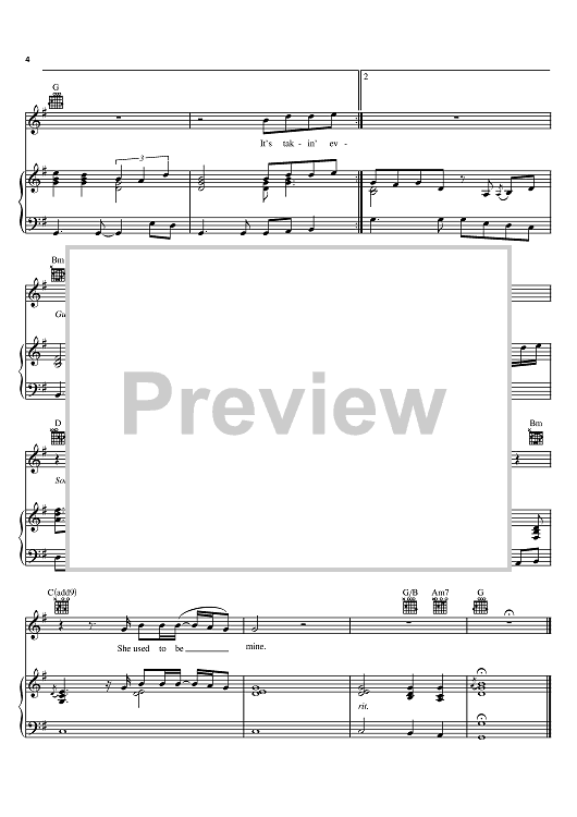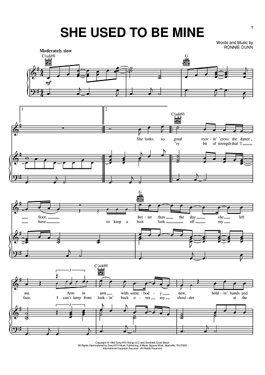 Digital Sheet Music for She Used To Be Mine by Ronnie Dunn, Brooks & Dunn scored for Piano/Vocal/Chords; id:385807