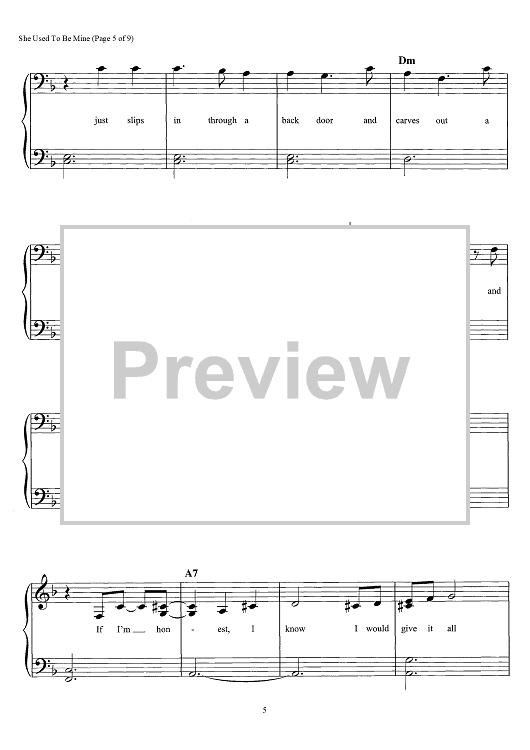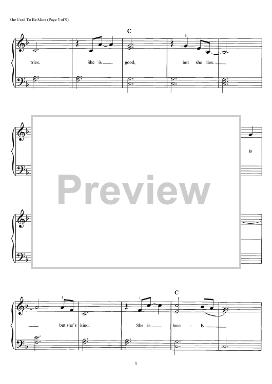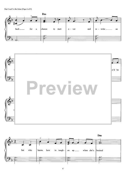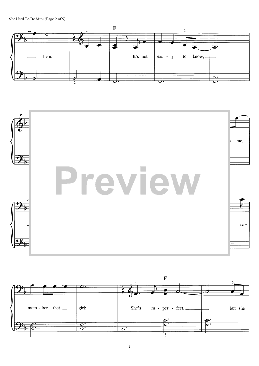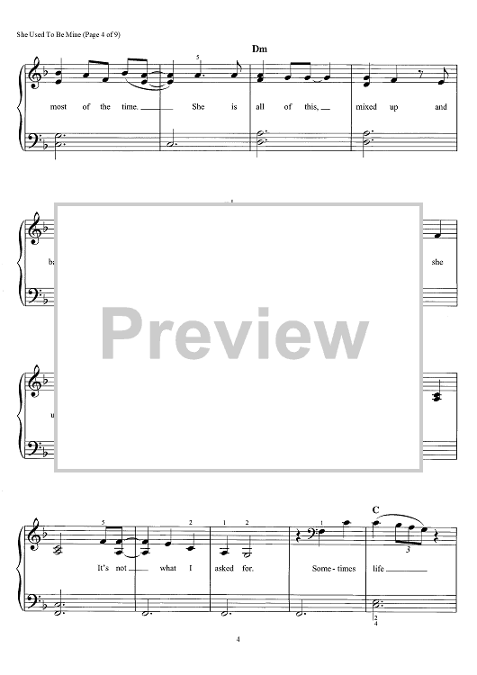 Digital Sheet Music for She Used To Be Mine by Sara Bareilles scored for Easy Piano/Vocal/Chords; id:466536