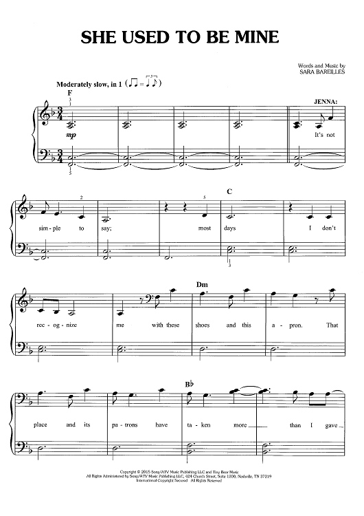 "She Used To Be Mine" Sheet Music by Sara Bareilles