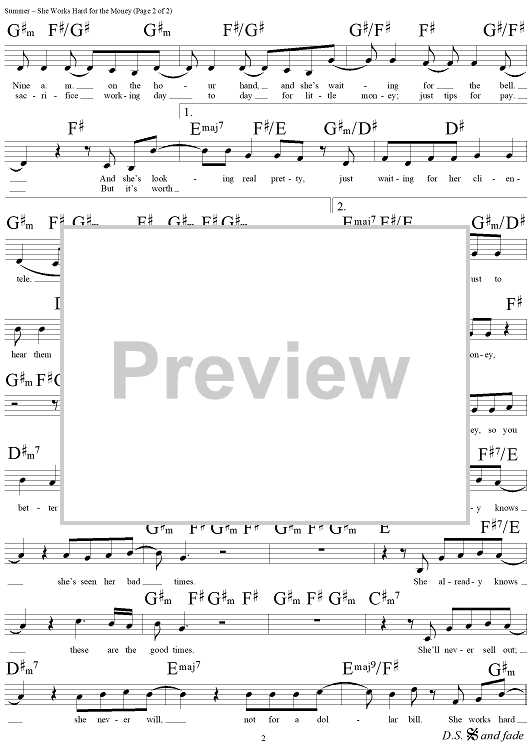 Digital Sheet Music for She Works Hard for the Money by Michael Omartian, Donna Summer scored for Lead Sheet; id:124134