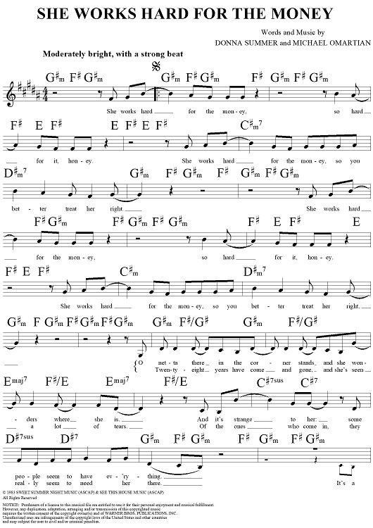 "She Works Hard for the Money" Sheet Music by Donna Summer