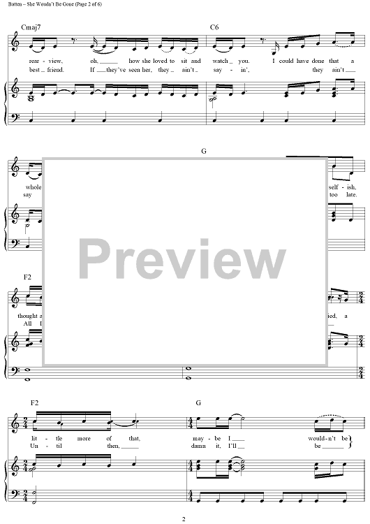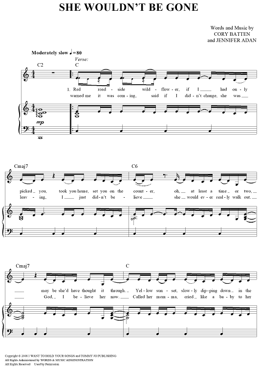 Digital Sheet Music for She Wouldn't Be Gone by Blake Shelton, Cory Batten, Jennifer Adan scored for Piano/Vocal/Chords; id:444430