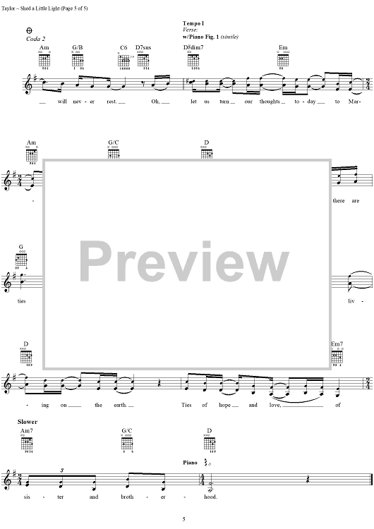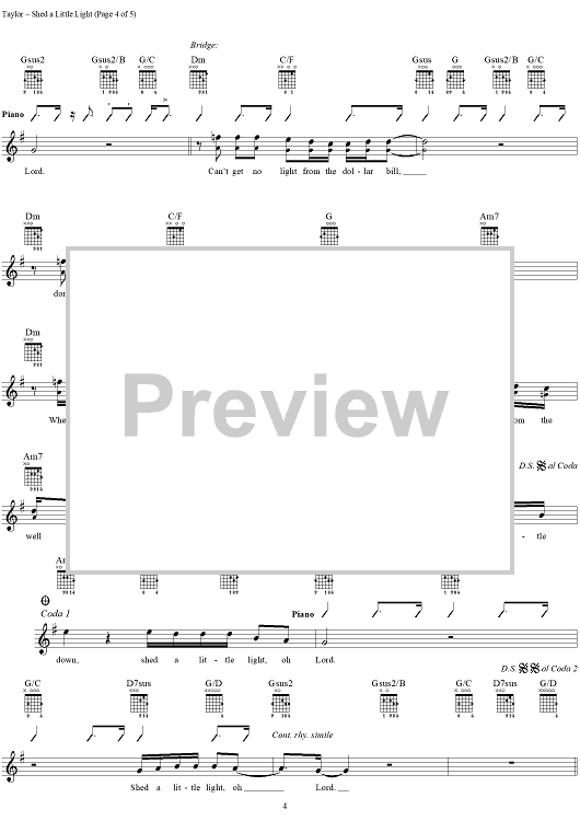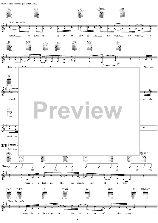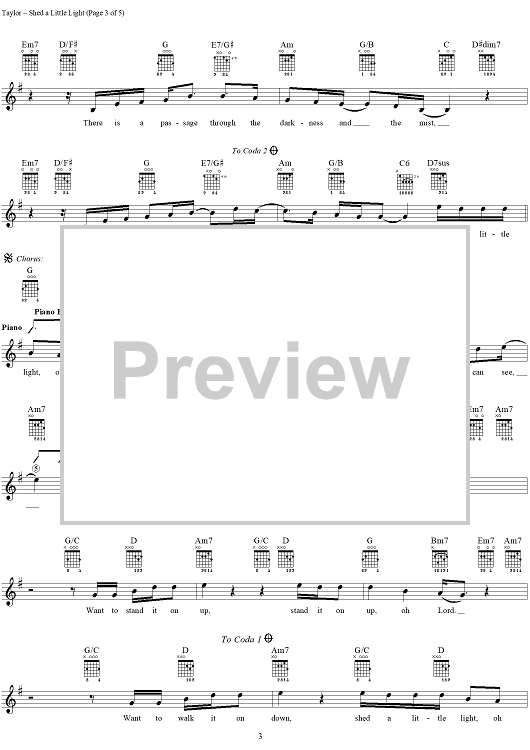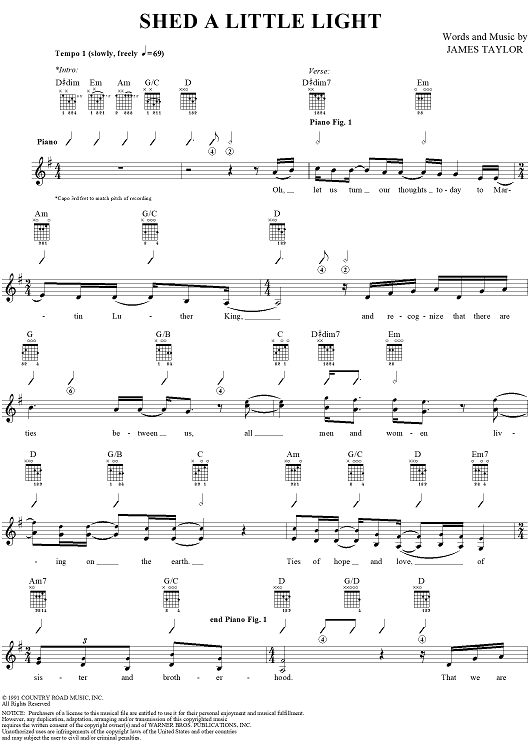 Digital Sheet Music for Shed a Little Light by James Taylor scored for Guitar Tab/Vocal; id:285502