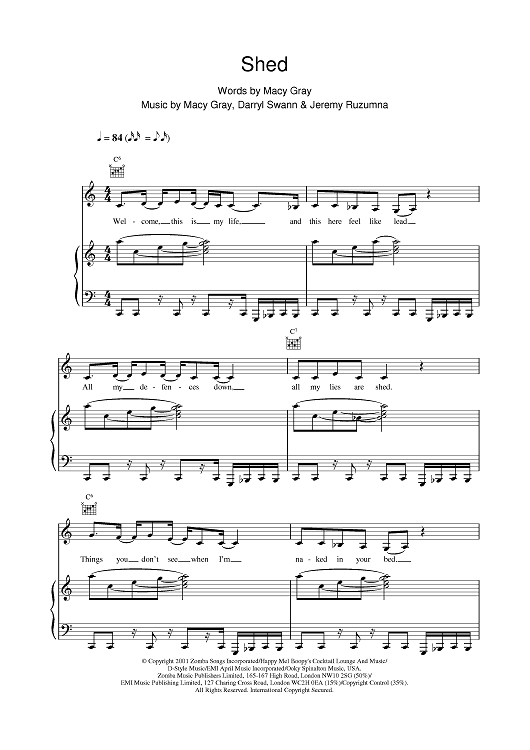 Digital Sheet Music for Shed by Macy Gray scored for Piano/Vocal/Chords; id:377461