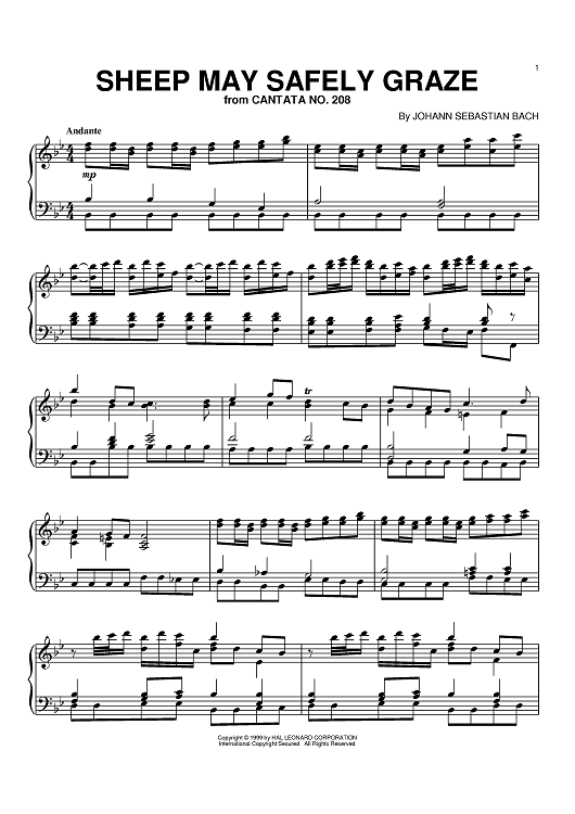 "Sheep May Safely Graze" Sheet Music by Johann Sebastian Bach