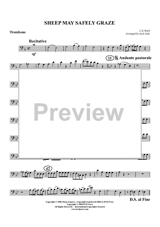 Digital Sheet Music for Sheep May Safely Graze - Trombone by , Johann Sebastian Bach, Jack Gale scored for Brass Quintet; id:405306
