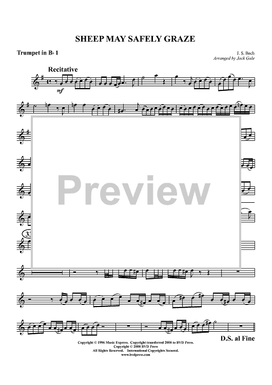 Digital Sheet Music for Sheep May Safely Graze - Trumpet 1 by , Johann Sebastian Bach, Jack Gale scored for Brass Quintet; id:405303