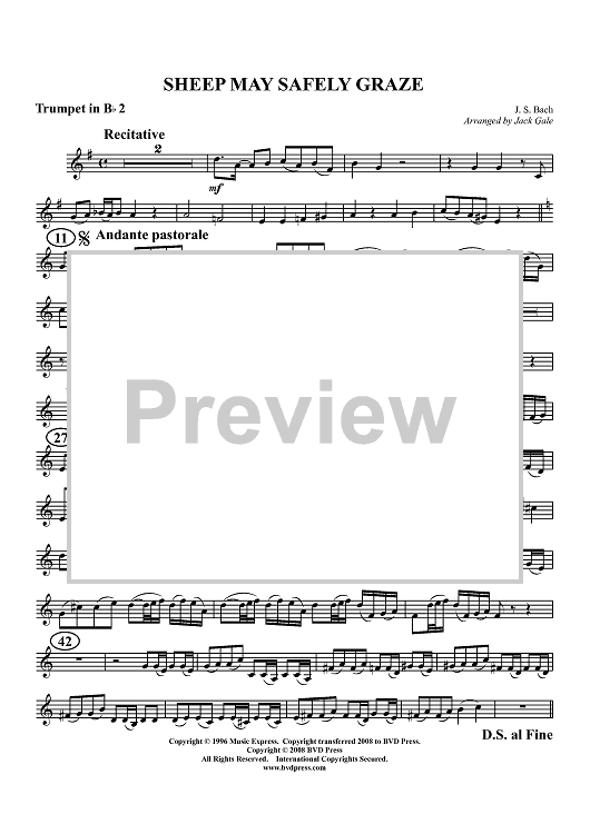 Digital Sheet Music for Sheep May Safely Graze - Trumpet 2 by , Johann Sebastian Bach, Jack Gale scored for Brass Quintet; id:405304