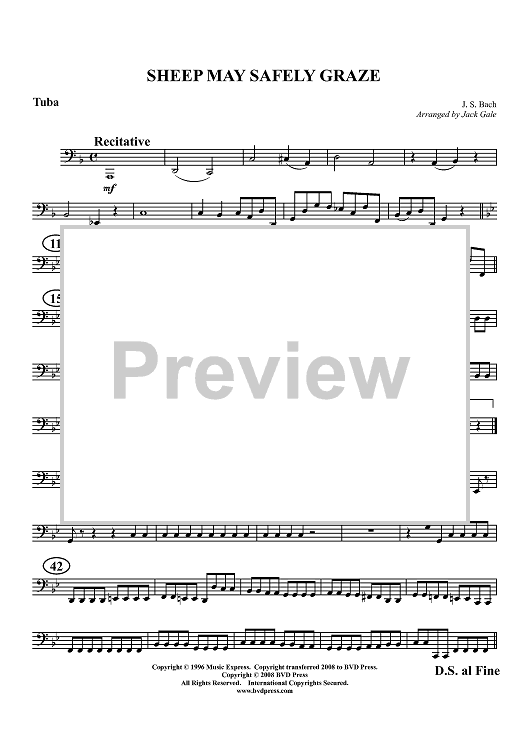 Digital Sheet Music for Sheep May Safely Graze - Tuba by , Johann Sebastian Bach, Jack Gale scored for Brass Quintet; id:405307