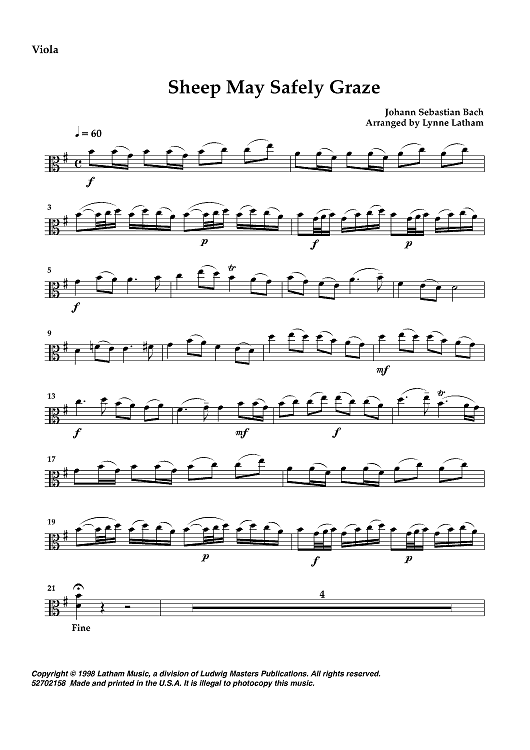 Digital Sheet Music for Sheep May Safely Graze - Viola by , Johann Sebastian Bach, Lynne Latham scored for String Trio; id:450455