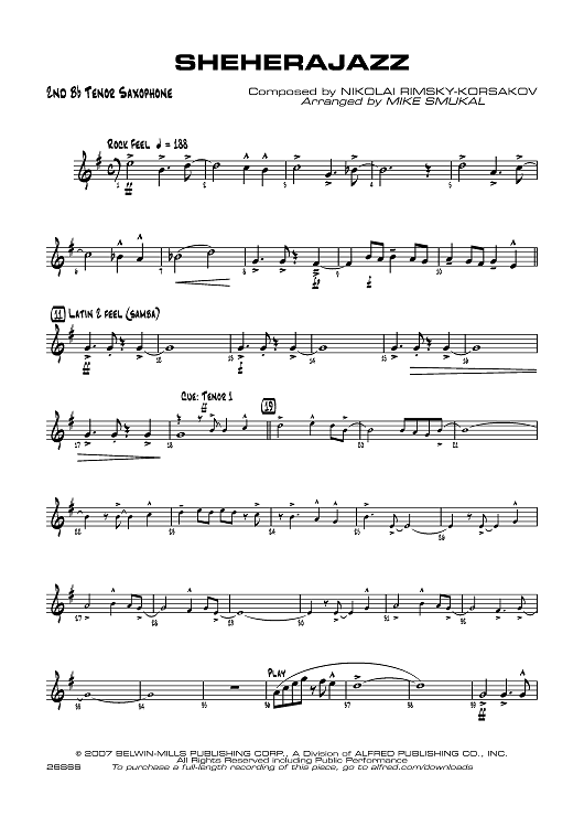 Digital Sheet Music for Sheherajazz - B-flat Tenor Saxophone 2 by Mike Smukal, Nikolai Rimsky-Korsakov scored for Jazz Ensemble; id:360342