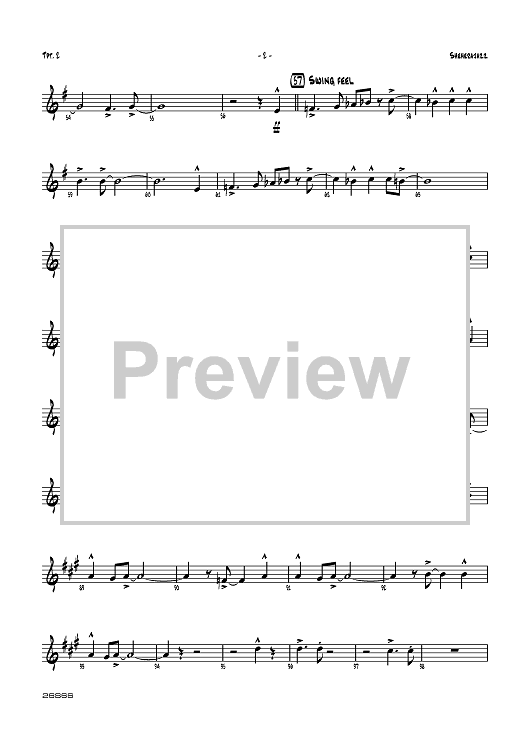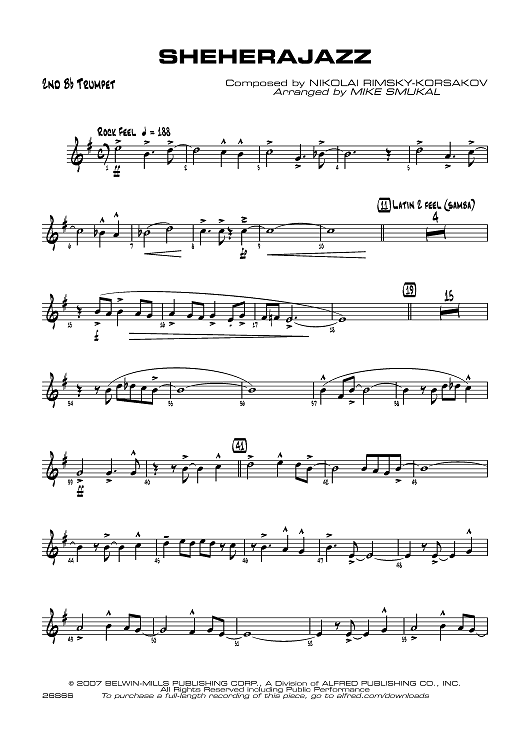 Digital Sheet Music for Sheherajazz - B-flat Trumpet 2 by Mike Smukal, Nikolai Rimsky-Korsakov scored for Jazz Ensemble; id:360345