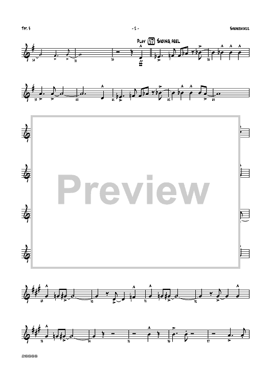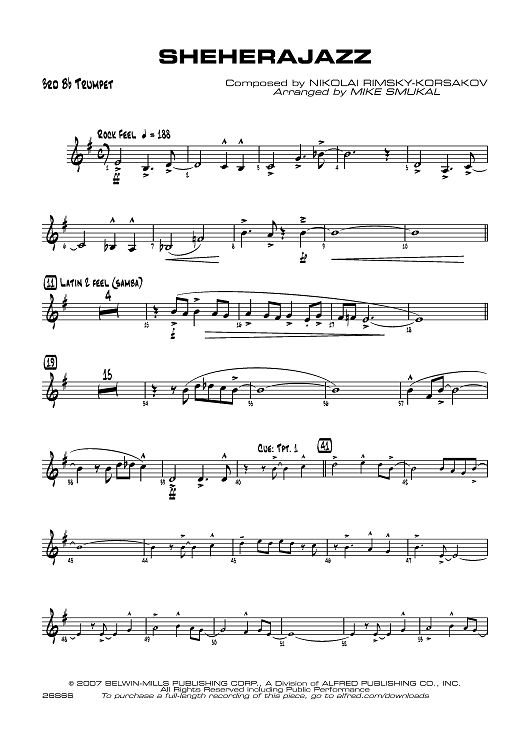 Digital Sheet Music for Sheherajazz - B-flat Trumpet 3 by Mike Smukal, Nikolai Rimsky-Korsakov scored for Jazz Ensemble; id:360346