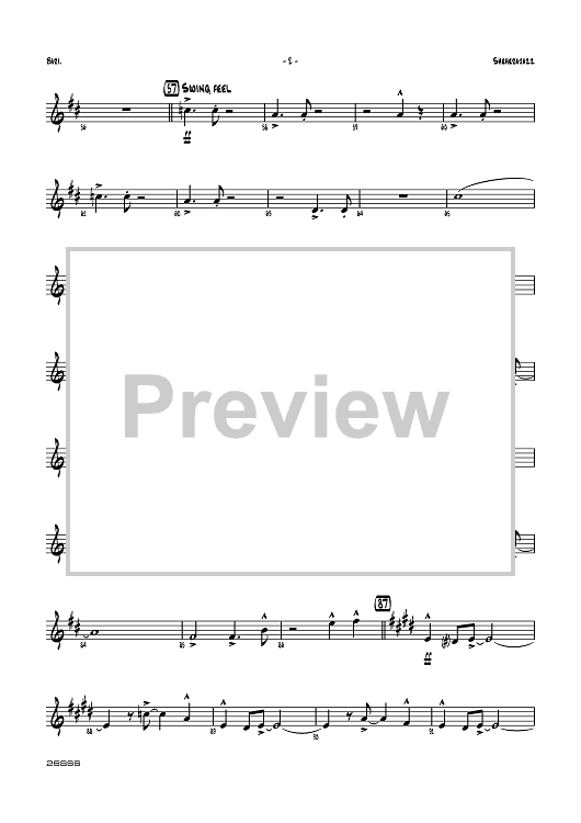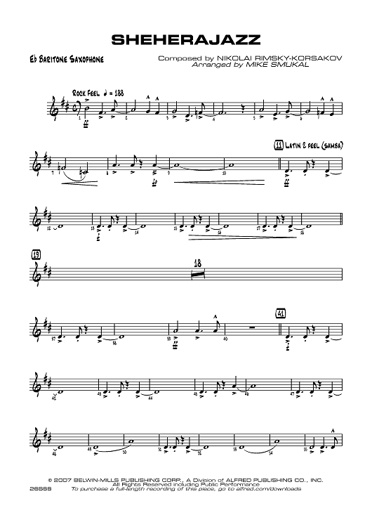 Digital Sheet Music for Sheherajazz - E-flat Baritone Saxophone by Mike Smukal, Nikolai Rimsky-Korsakov scored for Jazz Ensemble; id:360343