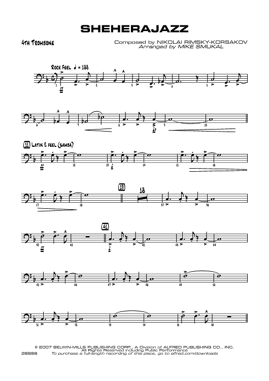 Digital Sheet Music for Sheherajazz - Trombone 4 by Mike Smukal, Nikolai Rimsky-Korsakov scored for Jazz Ensemble; id:360351