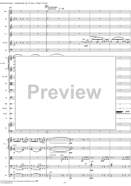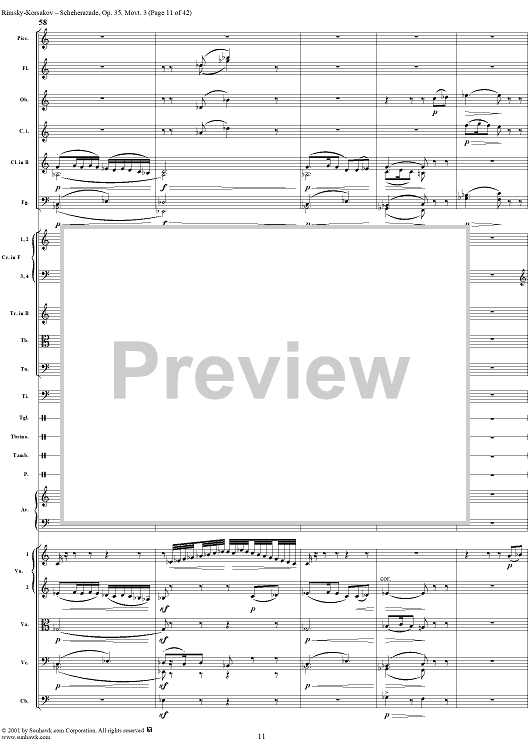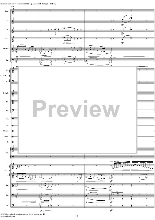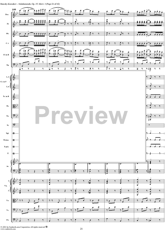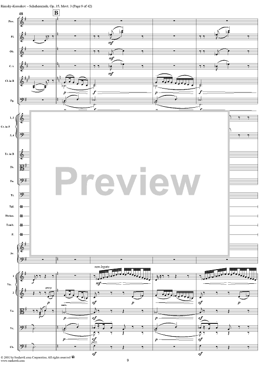 "Sheherazade, Movement 3 - Full Score" Sheet Music by Nikolai Rimsky-Korsakov
