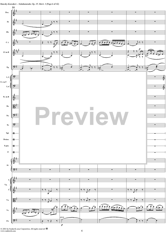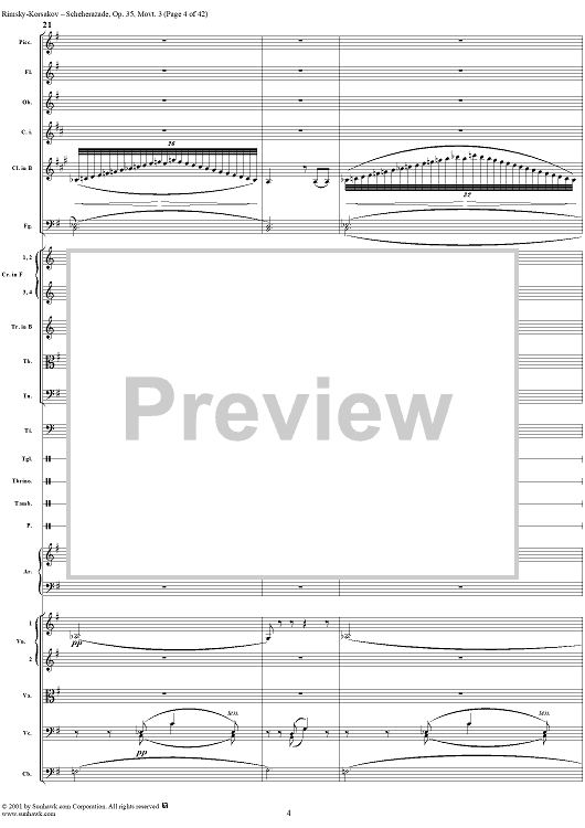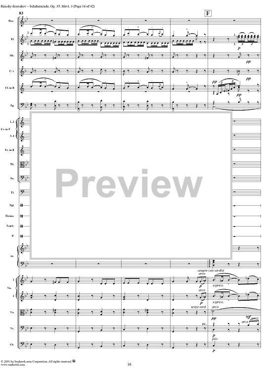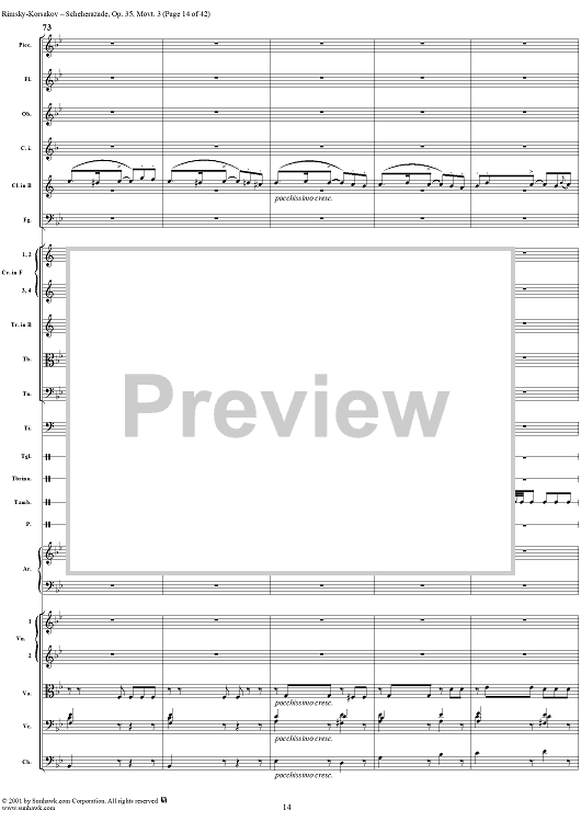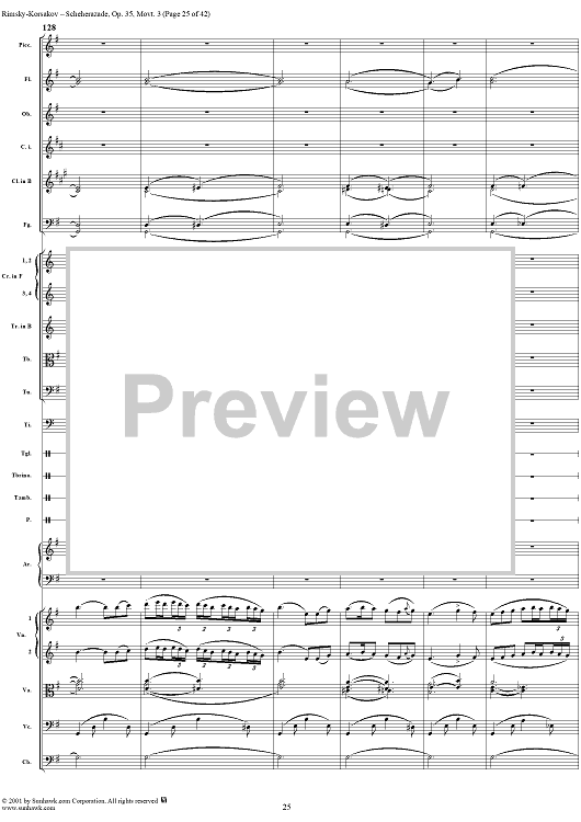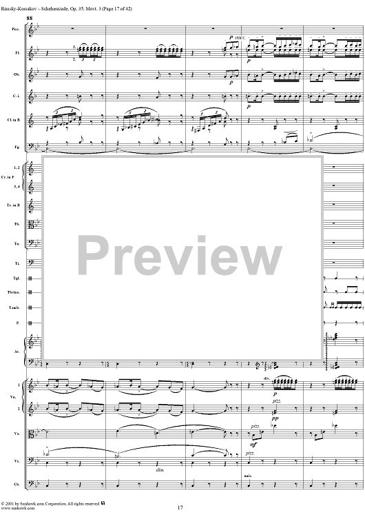 Digital Sheet Music for Sheherazade, Movement 3 - Full Score by Nikolai Rimsky-Korsakov scored for Orchestra; id:255621