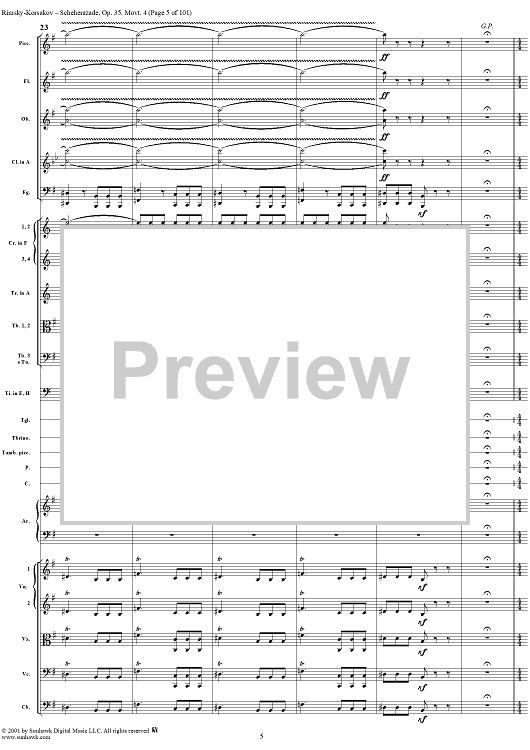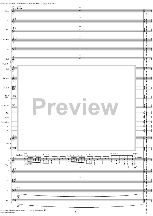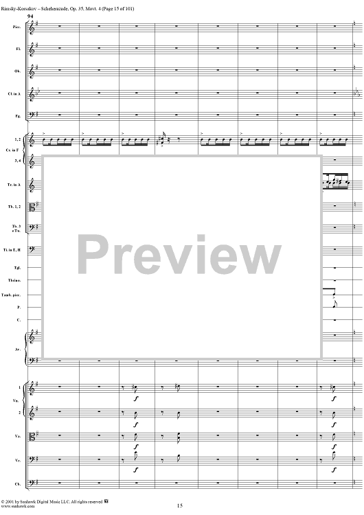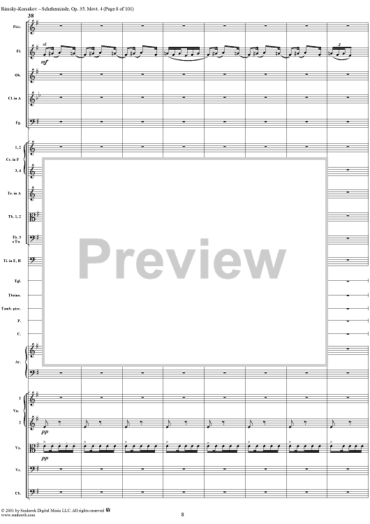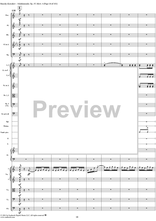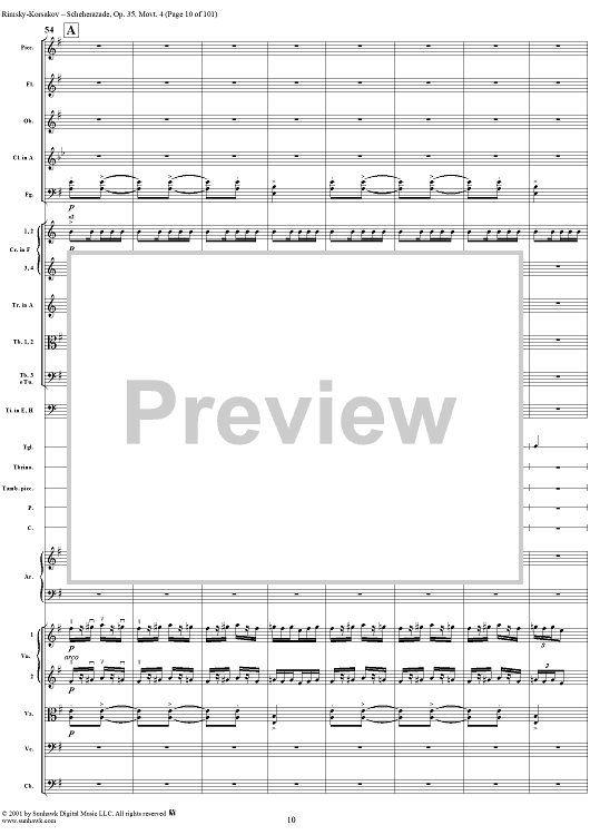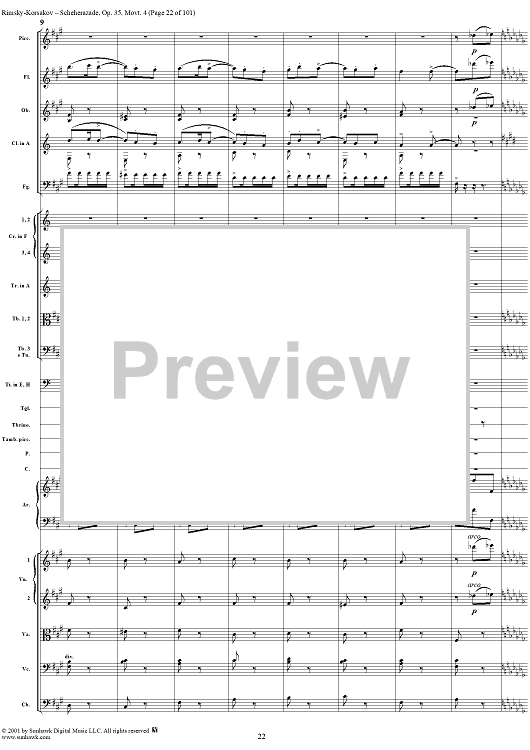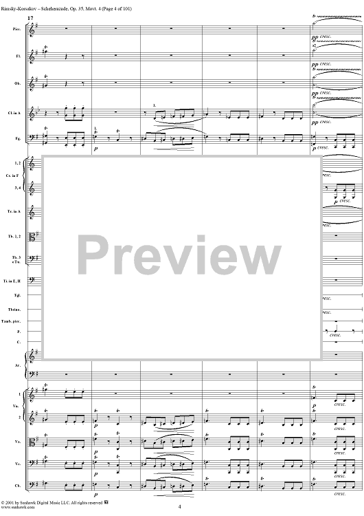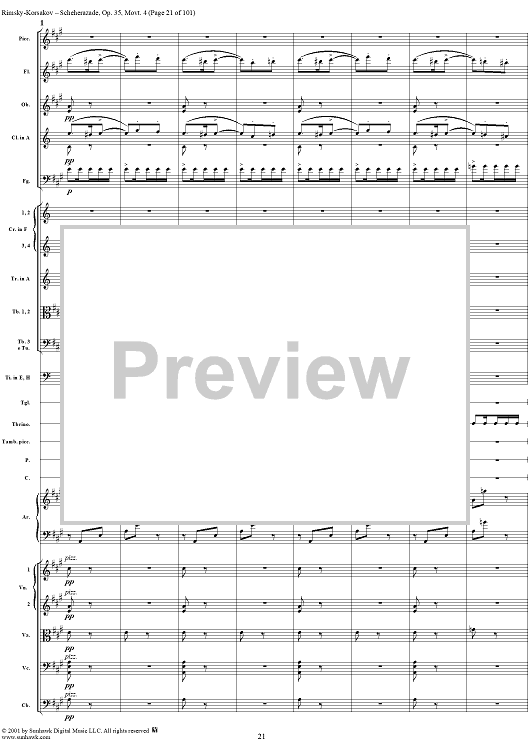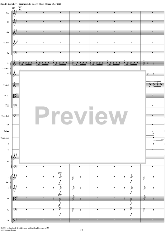 Digital Sheet Music for Sheherazade, Movement 4 - Full Score by Nikolai Rimsky-Korsakov scored for Orchestra; id:255622
