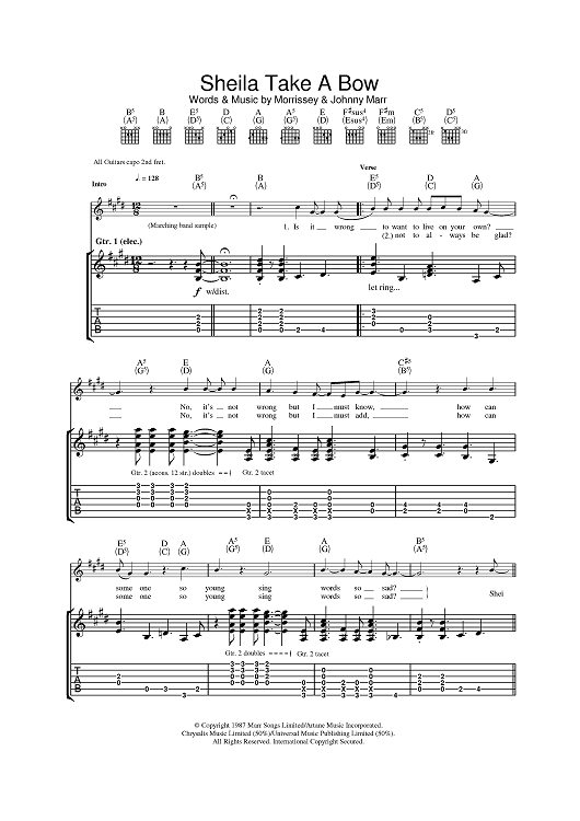Digital Sheet Music for Sheila Take A Bow by Johnny Marr, The Smiths, Morrissey scored for Guitar Tab; id:386992