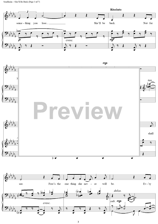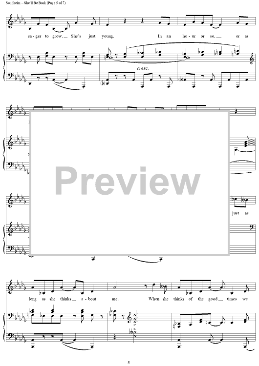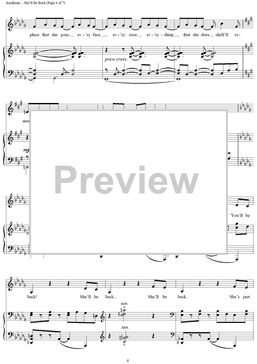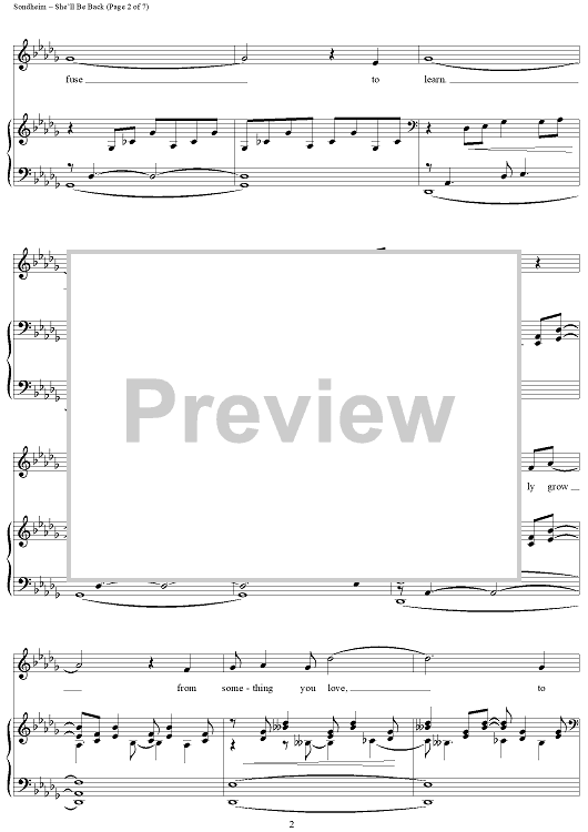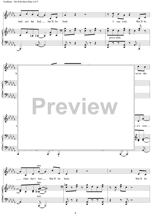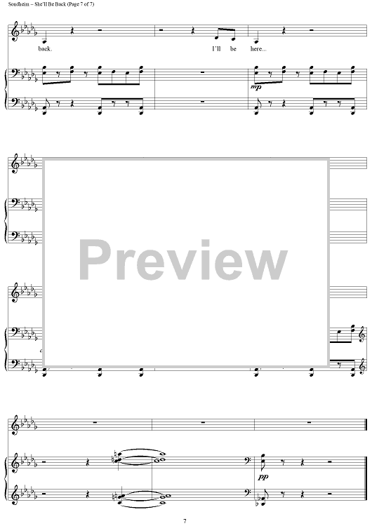 Digital Sheet Music for She'll Be Back (Film Version) by Stephen Sondheim scored for Piano/Vocal/Chords; id:446932