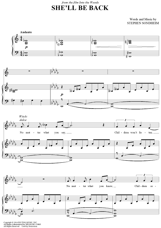 "She'll Be Back (Film Version)" Sheet Music by Stephen Sondheim