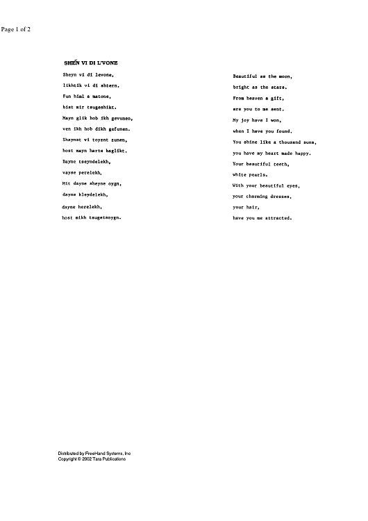 "Shén Vi Di L'vone - Lyrics" Sheet Music by J. Rumshinsky