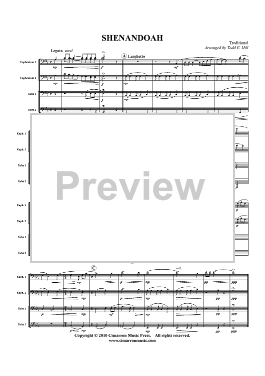 Digital Sheet Music for Shenandoah - Score by Traditional, Todd Hill scored for Tuba Quartet; id:426956