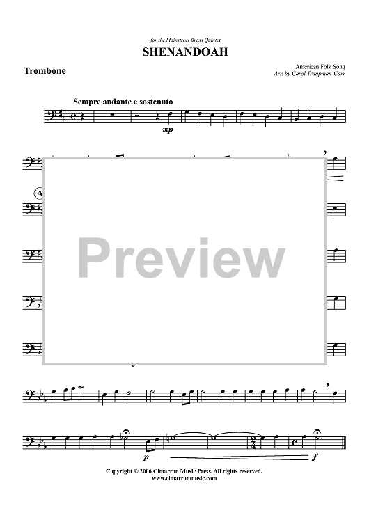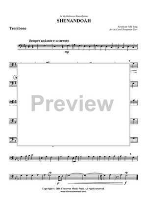 Digital Sheet Music for Shenandoah - Trombone by , American Folk Song, Carol Traupman-Carr scored for Brass Quintet; id:357458