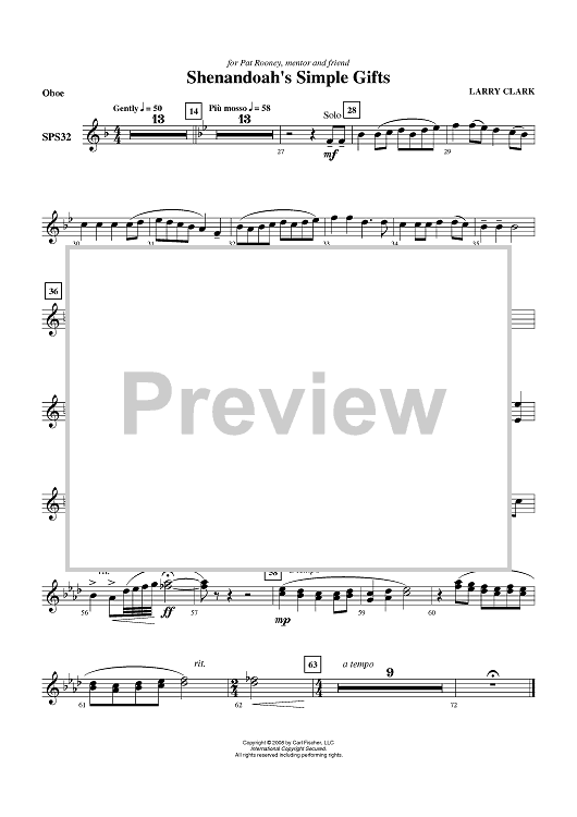 "Shenandoah's Simple Gifts - Oboe" Sheet Music by Larry Clark