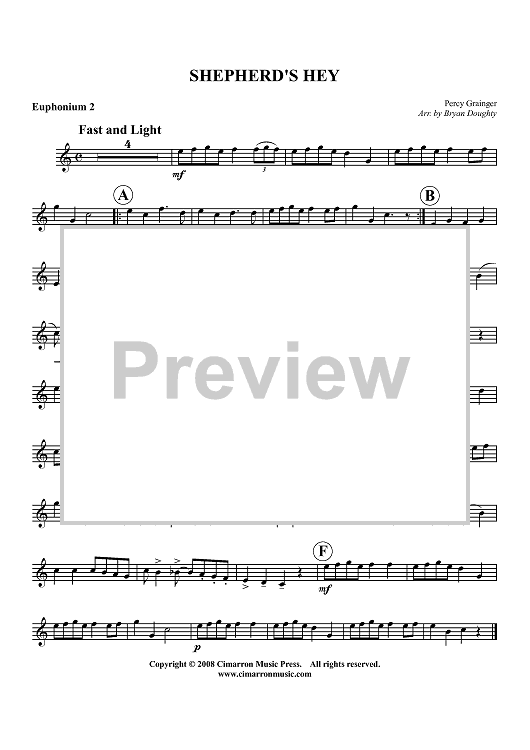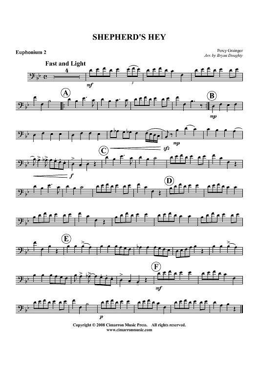 "Shepherd's Hey - Euphonium 2 BC/TC" Sheet Music by Percy Grainger