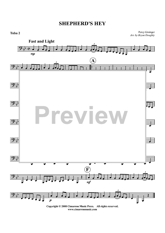 "Shepherd's Hey - Tuba 2" Sheet Music by Percy Grainger