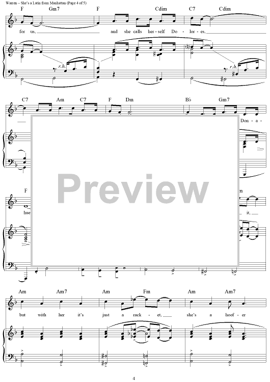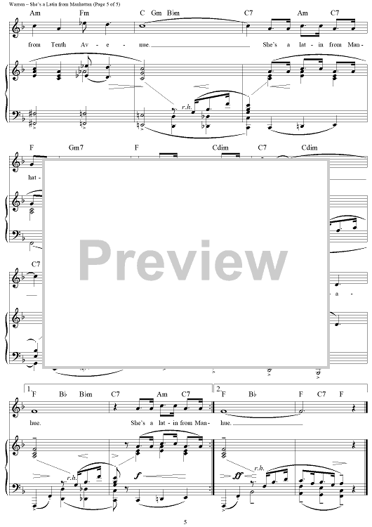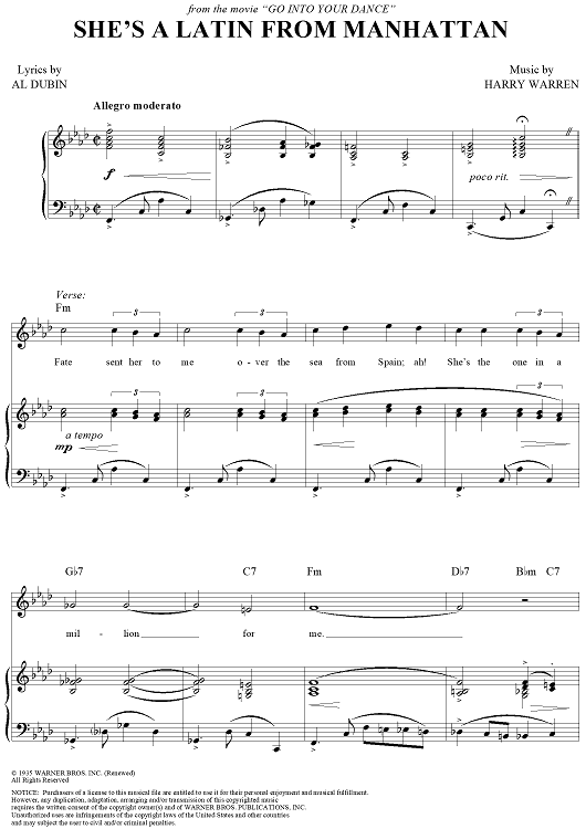 Digital Sheet Music for She's a Latin From Manhattan by Harry Warren, Al Dubin scored for Piano/Vocal/Chords; id:264364