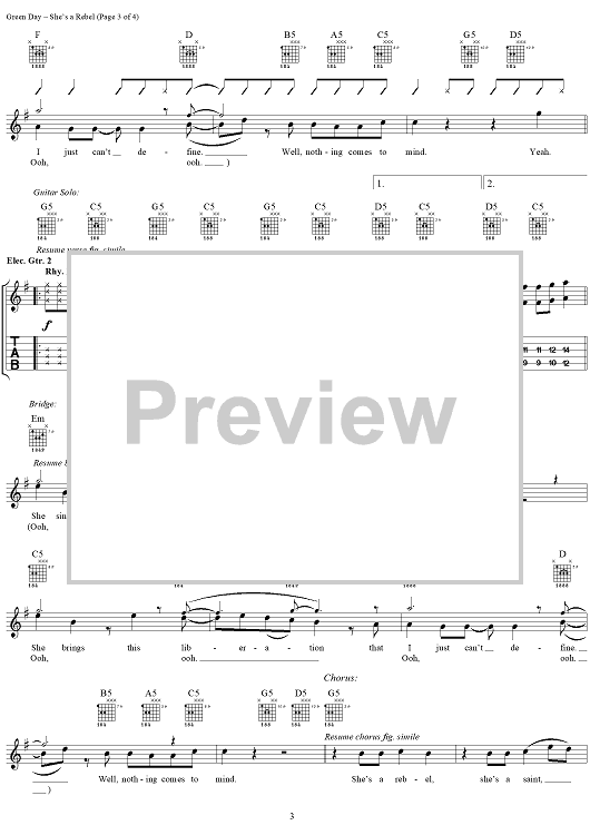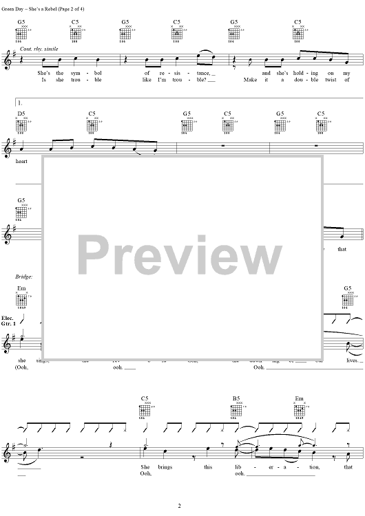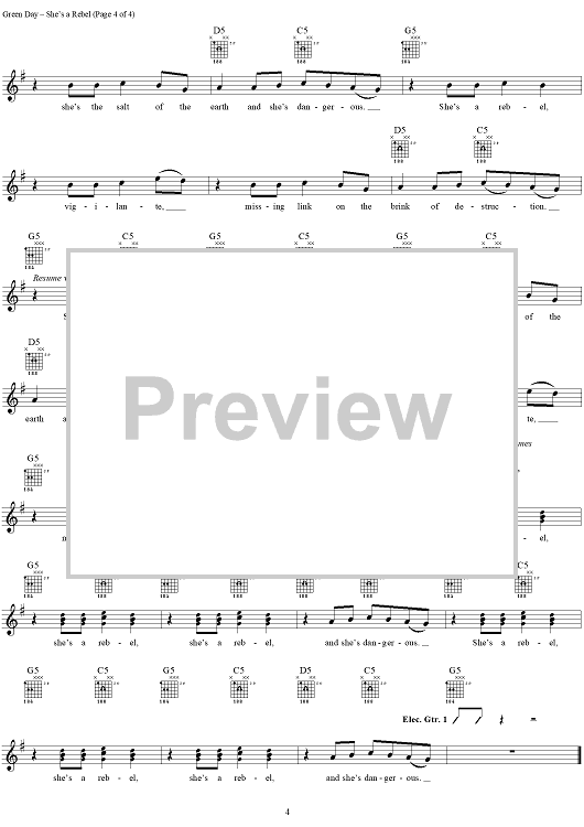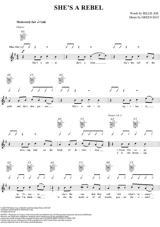 Digital Sheet Music for She's A Rebel by Green Day, Billie Joe scored for Guitar Tab/Vocal; id:308505