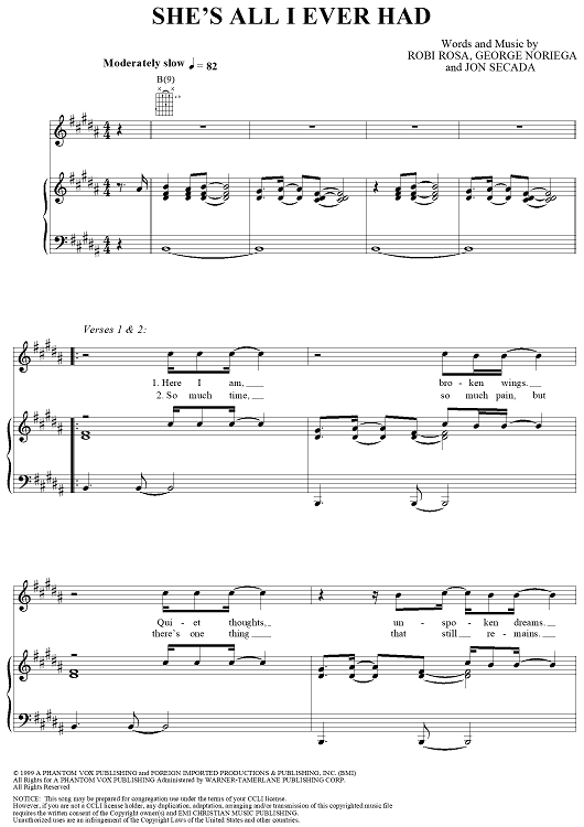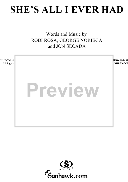 Digital Sheet Music for She's All I Ever Had by Jon Secada, Robi Rosa, Ricky Martin, George Noriega scored for Piano/Vocal/Chords; id:118801