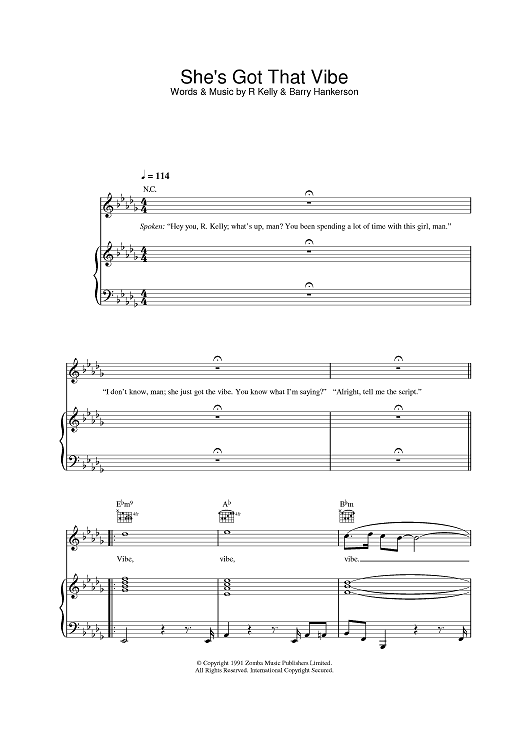 Digital Sheet Music for She's Got That Vibe by R. Kelly scored for Piano/Vocal/Chords; id:378308