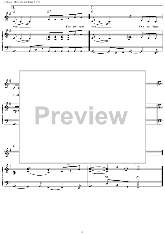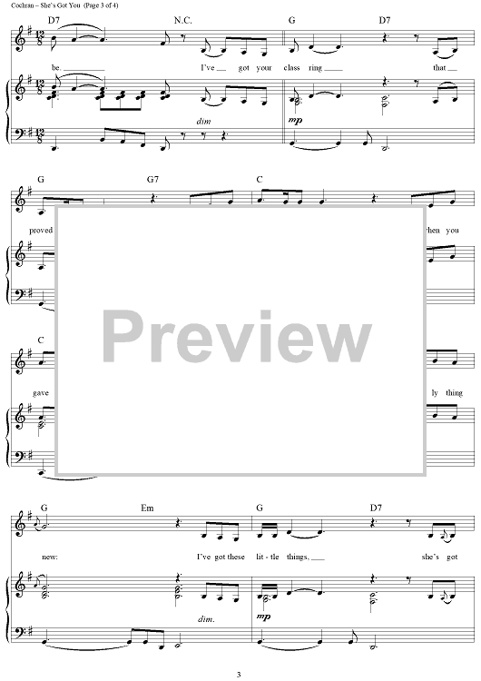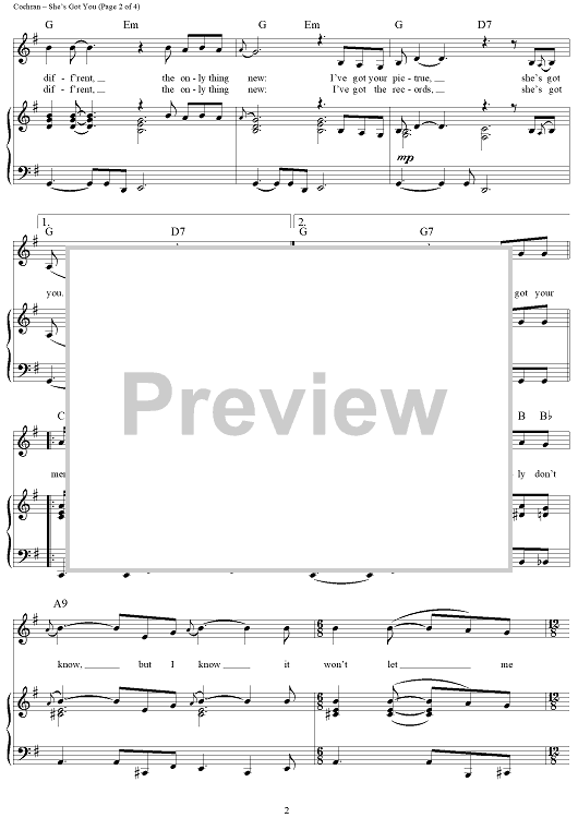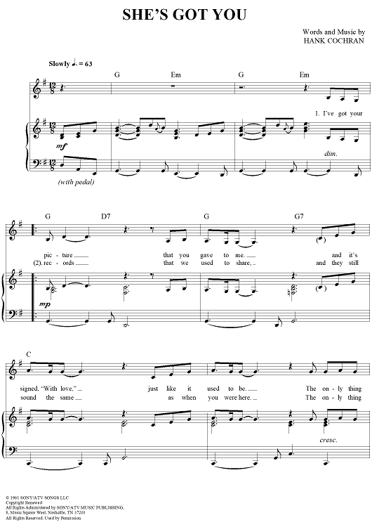 Digital Sheet Music for She's Got You by Patsy Cline, Hank Cochran, Loretta Lynn scored for Piano/Vocal/Chords; id:361677