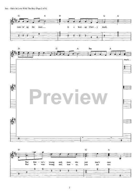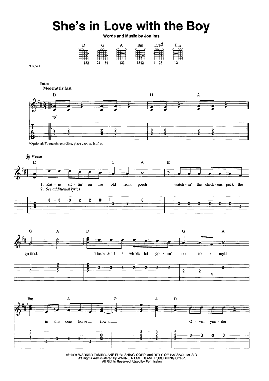 Digital Sheet Music for She's In Love With The Boy by Trisha Yearwood, Jon Ims scored for Easy Guitar Tab/Vocal; id:441858
