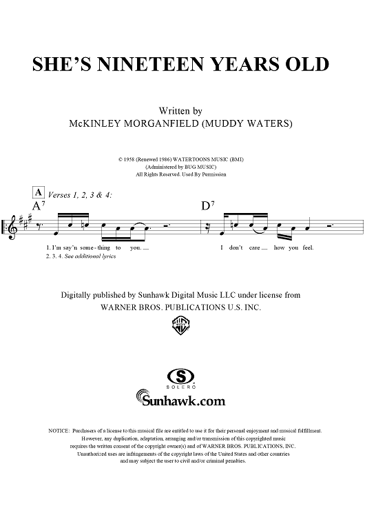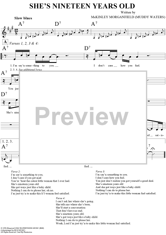 "She's Nineteen Years Old" Sheet Music by Muddy Waters