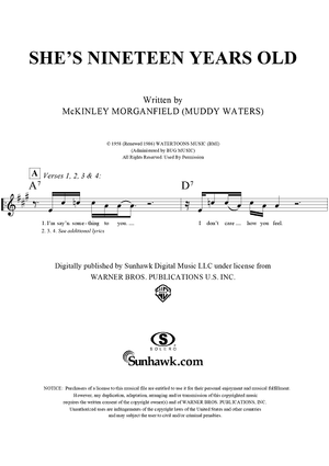 Digital Sheet Music for She's Nineteen Years Old by Muddy Waters scored for Lead Sheet; id:291686