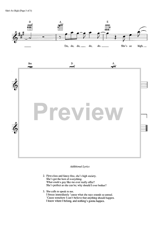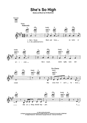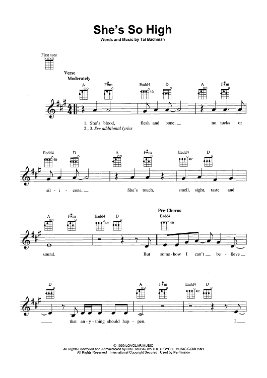 Digital Sheet Music for She's So High by Tal Bachman scored for Ukulele/Vocal; id:465395